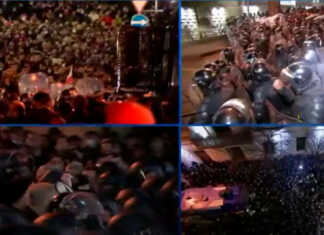 საქართველოს პარლამენტის შენობასთან, პოლიციასა და აქციიის მონაწილეებს შორის დაპირისპირებაა.