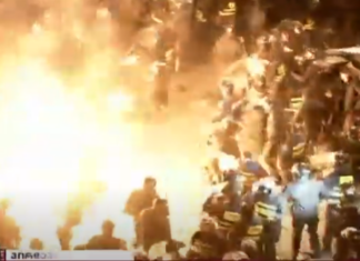 VIDEO: აქციაზე მომიტინგეებმა პოლიციას მოლოტოვის კოქტეილი ესროლეს ( ვიდეო)