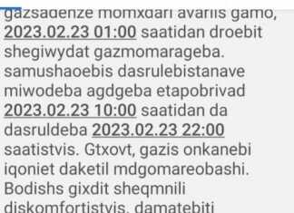 3 შეტყობინება მივიღე: შუქის, წყლის და გაზის მოწოდება შეგიწყდებათ, სამივე ქსელის ავარიული დაზიანების გამოო (?!). ?