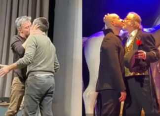 მუსიკისა და დრამის თეატრის მამაკაცმა მსახიობებმა სპექტაკლში "შეყრა", თორნიკე გოგრიჭიანისა და კახა კინწურაშვილის მხარდასაჭერად, ერთმანეთს აკოცეს.