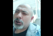 არაფხიზელ მდგომარეობაში მყოფი ბექა (ქესტუმ) გრიგორიადისი თბილისის საქალაქო სასამართლოს ეზოში ქართველებს აგინებს: