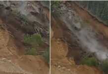 სოციალურ ქსელში ვრცელდება კადრები, სადაც ჩანს, როგორ ჩამოდის მიწის მასა გზის სავალ ნაწილზე.